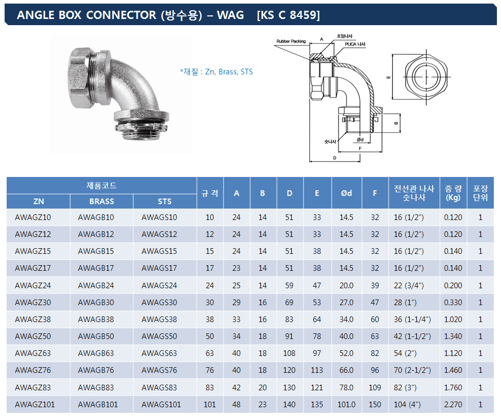 ANGLE BOX CONNECTOR (¹æ¼ö¿ë)-WAG